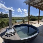 Cottage 5 has an indoor shower, bath and an outdoor shower with a Kolkol Wood-fired hot tub.