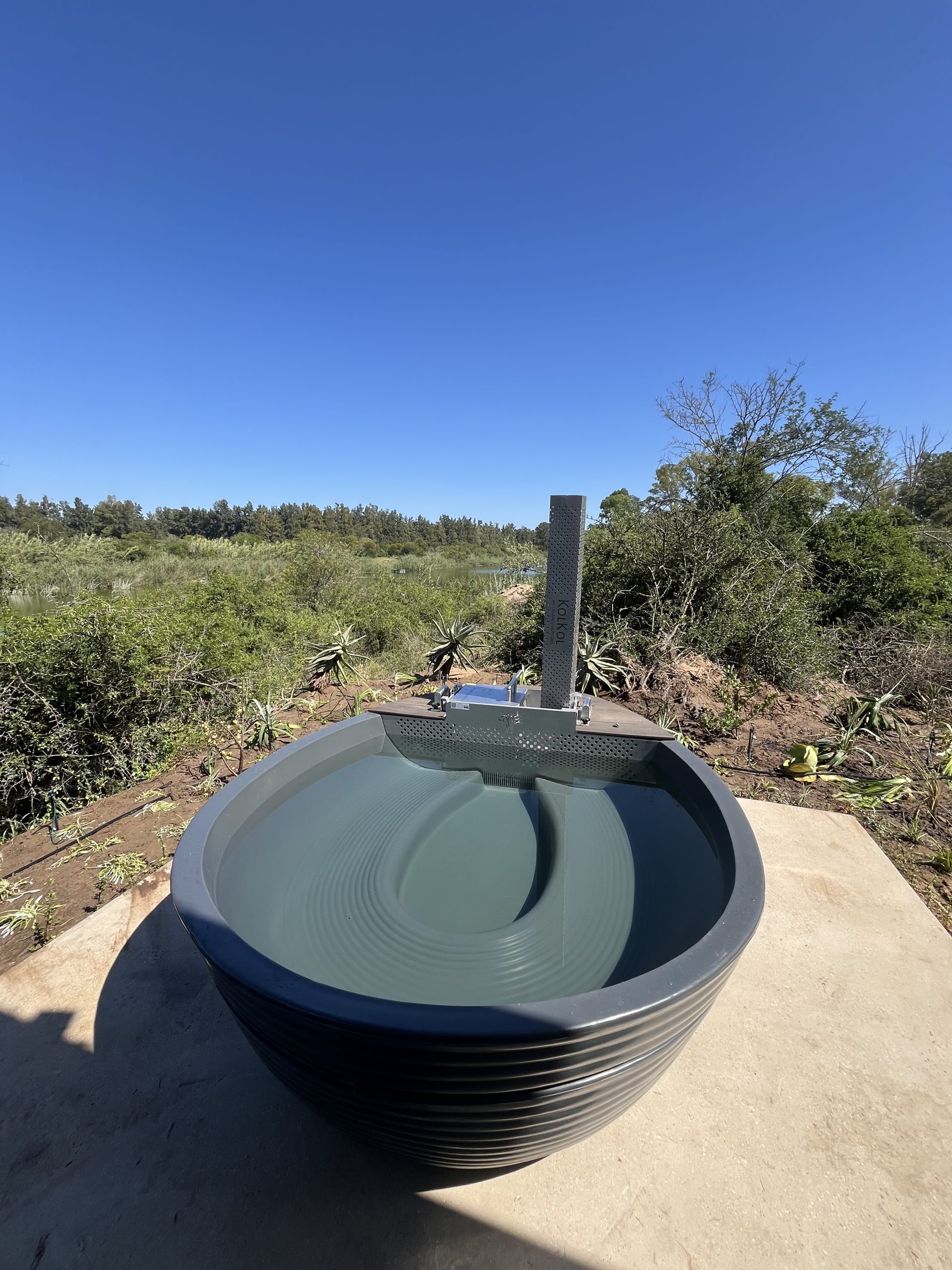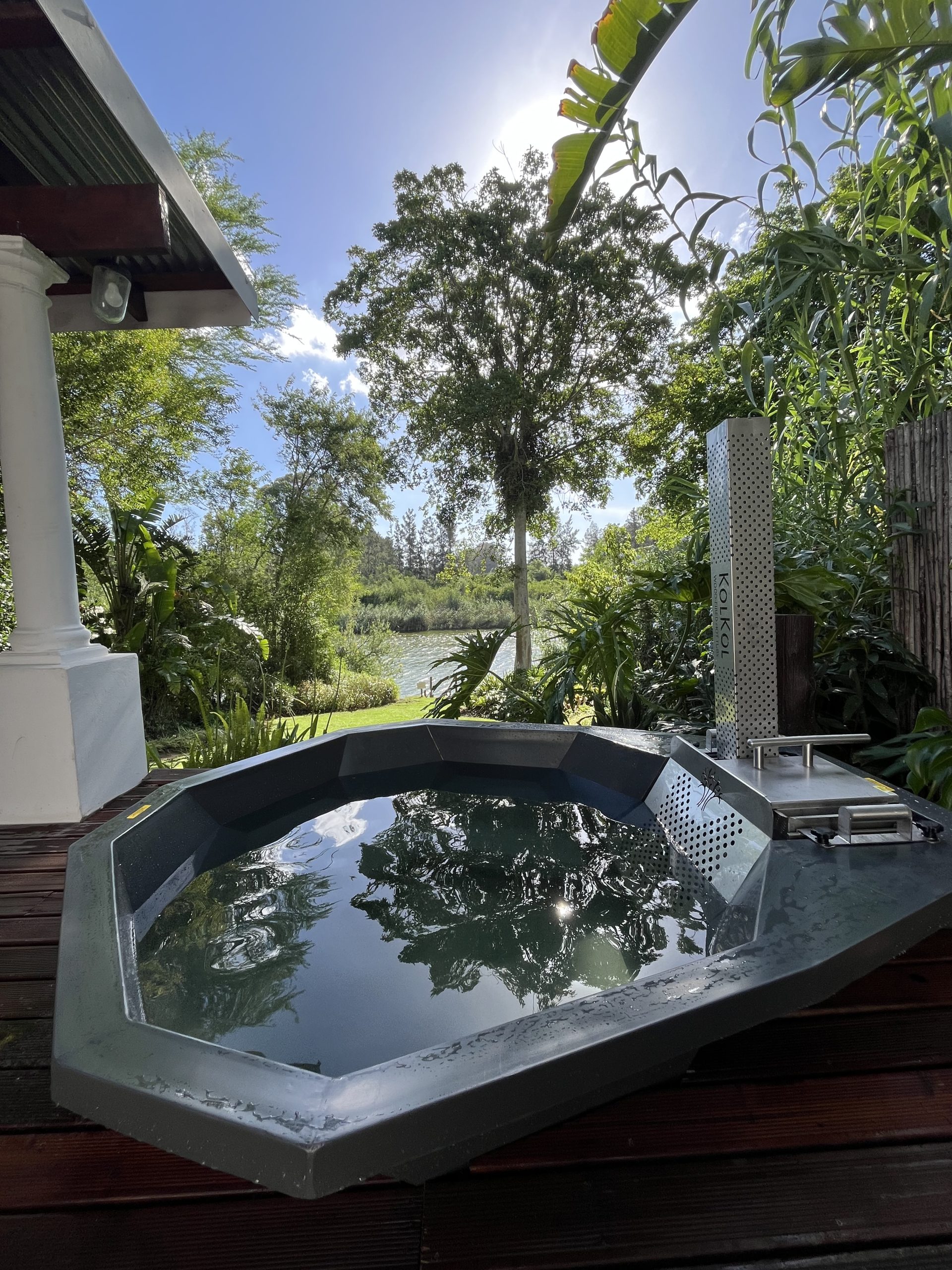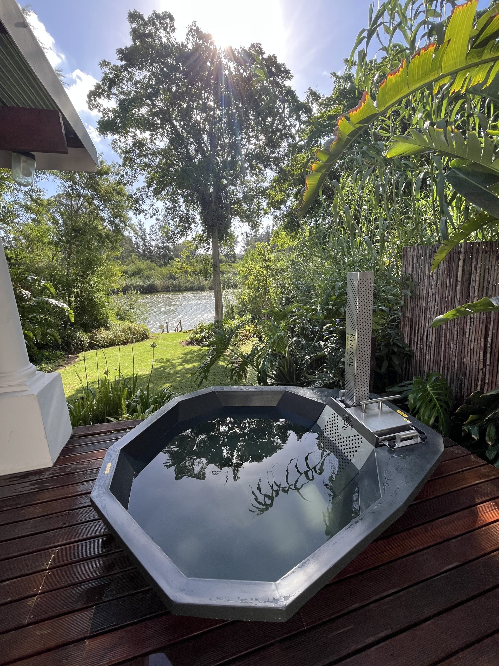 Cottage 5 has an indoor shower, bath and an outdoor shower with a Kolkol Wood-fired hot tub.