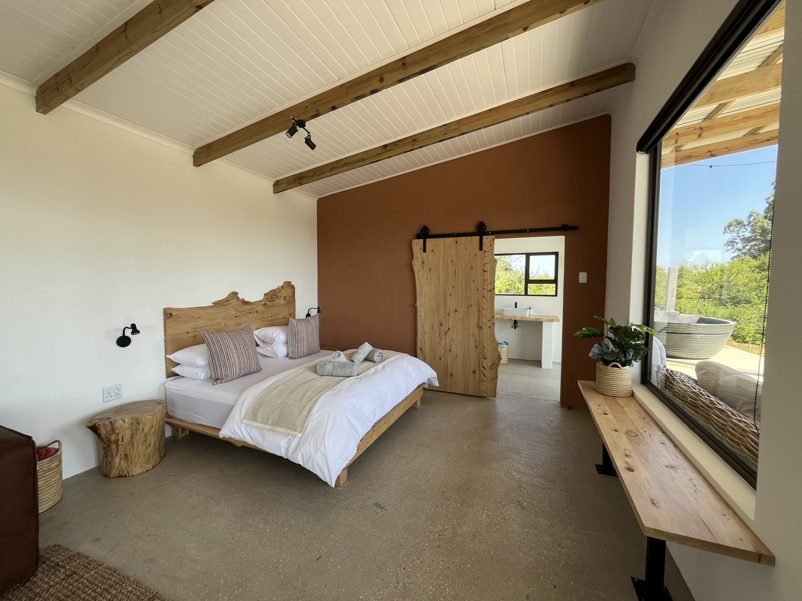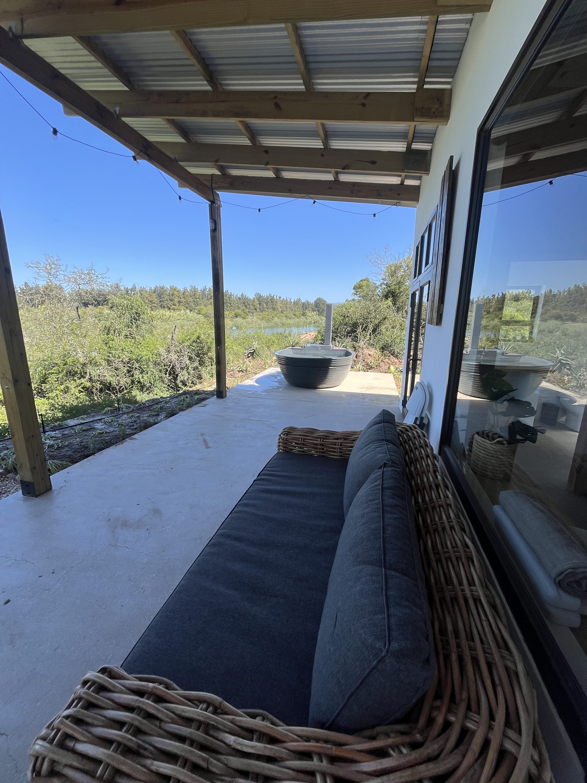 Furnished and self-catering it has separate indoor bathroom with bath and shower. You can also enjoy our outdoor shower and Kolkol Wood-fire hot tub.