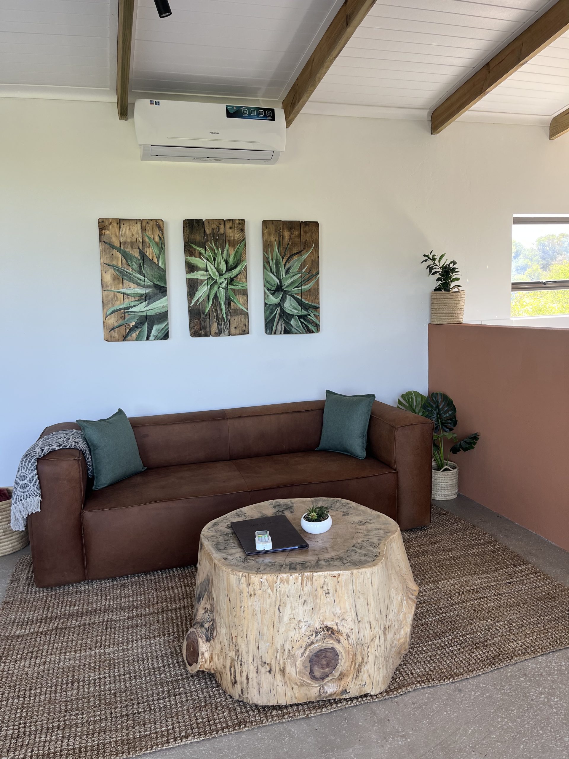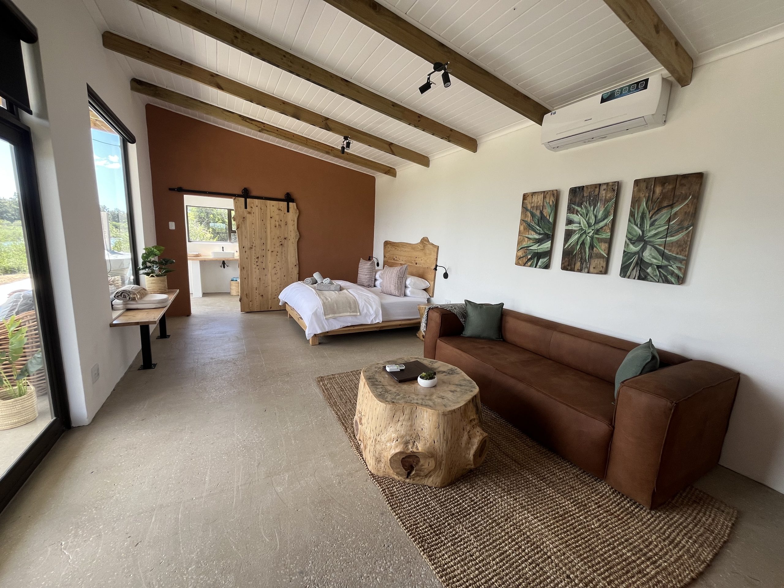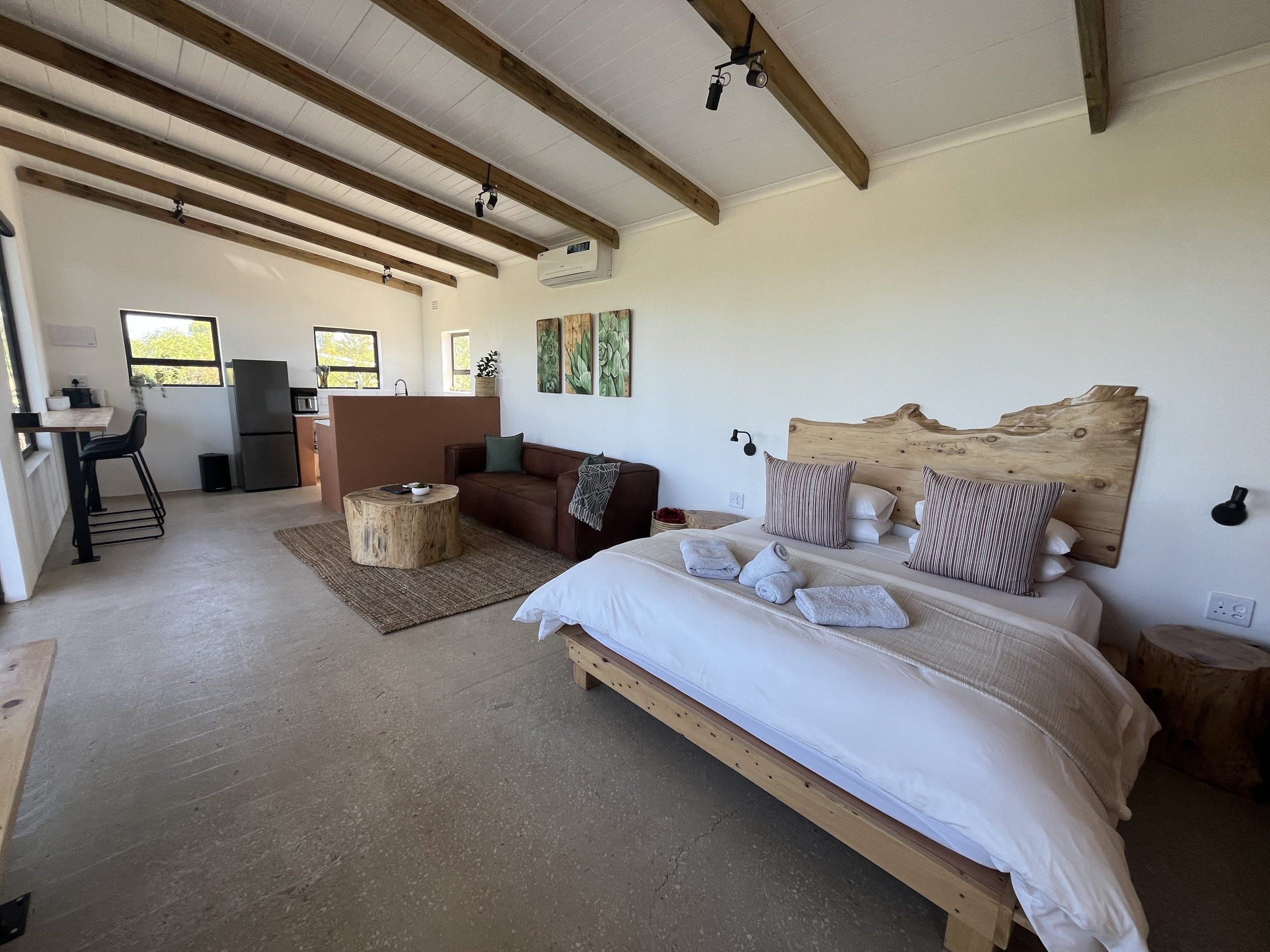 All the cottages and the tent have air conditioning/heater which during load shedding won’t work and and AC, the rest is on Solar.